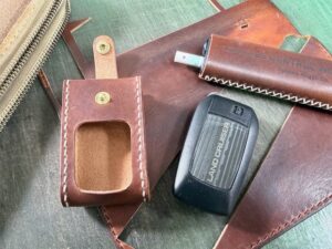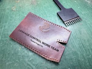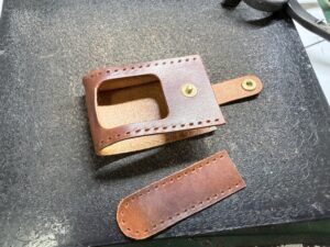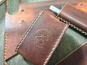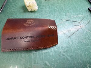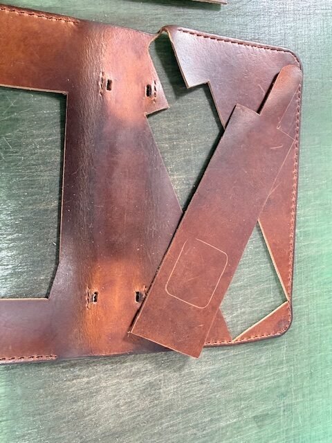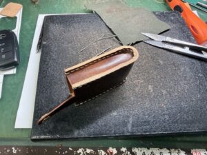 革の断面を平らに整え、クロスステッチで丁寧に縫い上げました。